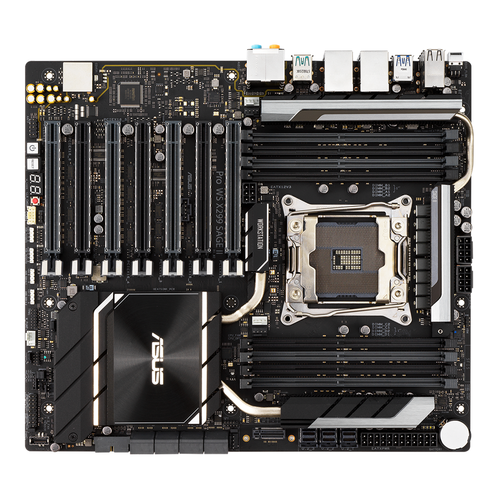 Špičková desktopová platforma Intel® posouvá se svými nejnovějšími procesory řady Intel Core™ X hranice. Procesory jsou výjimečné svými jádry, mezipamětí a kapacitou. Základní deska Pro WS X299 Sage II je připravena na ještě vyšší výpočetní výkon, který hravě zvládá úkoly náročné na CPU, a kapacita vám navíc umožňuje přidat další GPU a NVMe SSD k urychlení širokého spektra práce.