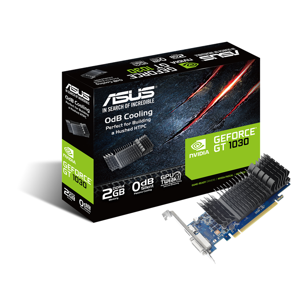 ASUS GeForce GT 1030 is the fantastic graphics card from ASUS. Engineered with a highly-efficient 0dB thermal design, it dissipates heat in complete silence — making GT 1030 the perfect choice for your slimline home-theater PC (HTPC) build. Exclusive Auto-Extreme Technology for premium quality and best reliability. It also has GPU Tweak II for intuitive performance tweaking.