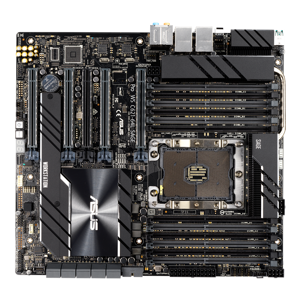 Intel LGA 3647 CEB workstation motherboard with support for 4 GPUs, 12 DIMMs, 10 SATAs, M.2, Intel Gigabit LAN, USB 3.2 Gen 2 and ASUS Control Center